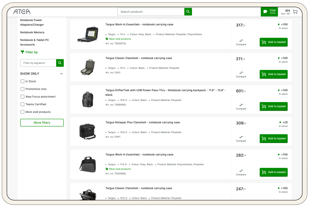 For Atea, we also ran the test everywhere a product card is present, but this time only on desktop. As mentioned before Atea is a B2B, so naturally you’ll find a majority of your users on desktop. For our KPIs we had similar goals as for Nelly. We looked at add to carts on both the quick-shop button and the one you can find on the product detail page, order and revenue.